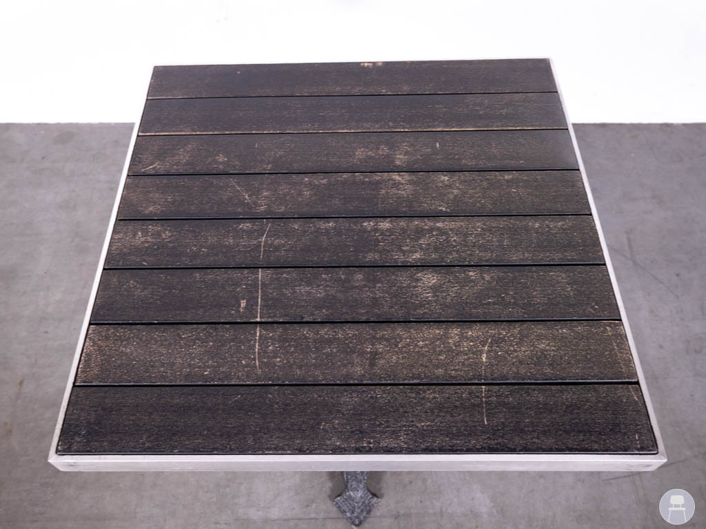 Tafelblad buiten Bram no-wood bruin Satelliet 77x77cm is een compact en weerbestendig tafelblad dat ideaal is voor professioneel terrasgebruik. Het blad heeft een afmeting van 77×77 cm en is vervaardigd uit no-wood, een onderhoudsvrij materiaal met een realistische houtlook. De donkerbruine lattenstructuur zorgt voor een sfeervolle uitstraling, terwijl de aluminium rand extra stevigheid en bescherming biedt. Dit tafelblad is afkomstig van het kwaliteitsmerk Satelliet en is geschikt voor intensief buitengebruik. Perfect voor horecaondernemers die op zoek zijn naar een duurzaam en stijlvol vierkant buitentafelblad dat jarenlang meegaat.