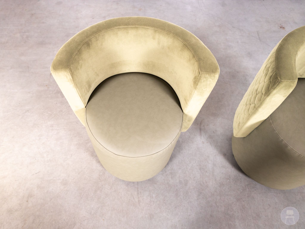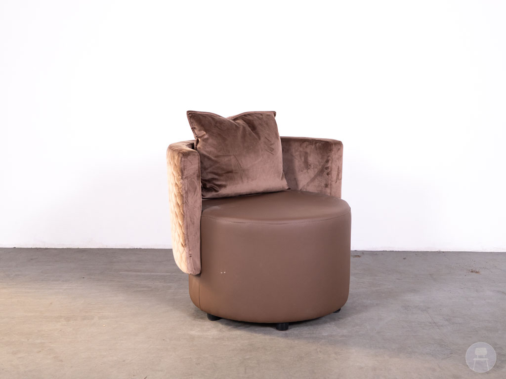 De skai zitting is eenvoudig te reinigen en ideaal voor intensief horecagebruik, terwijl de zachte velvet rug extra comfort en een luxe uitstraling geeft. Het ronde design zorgt voor een uitnodigende en eigentijdse look.