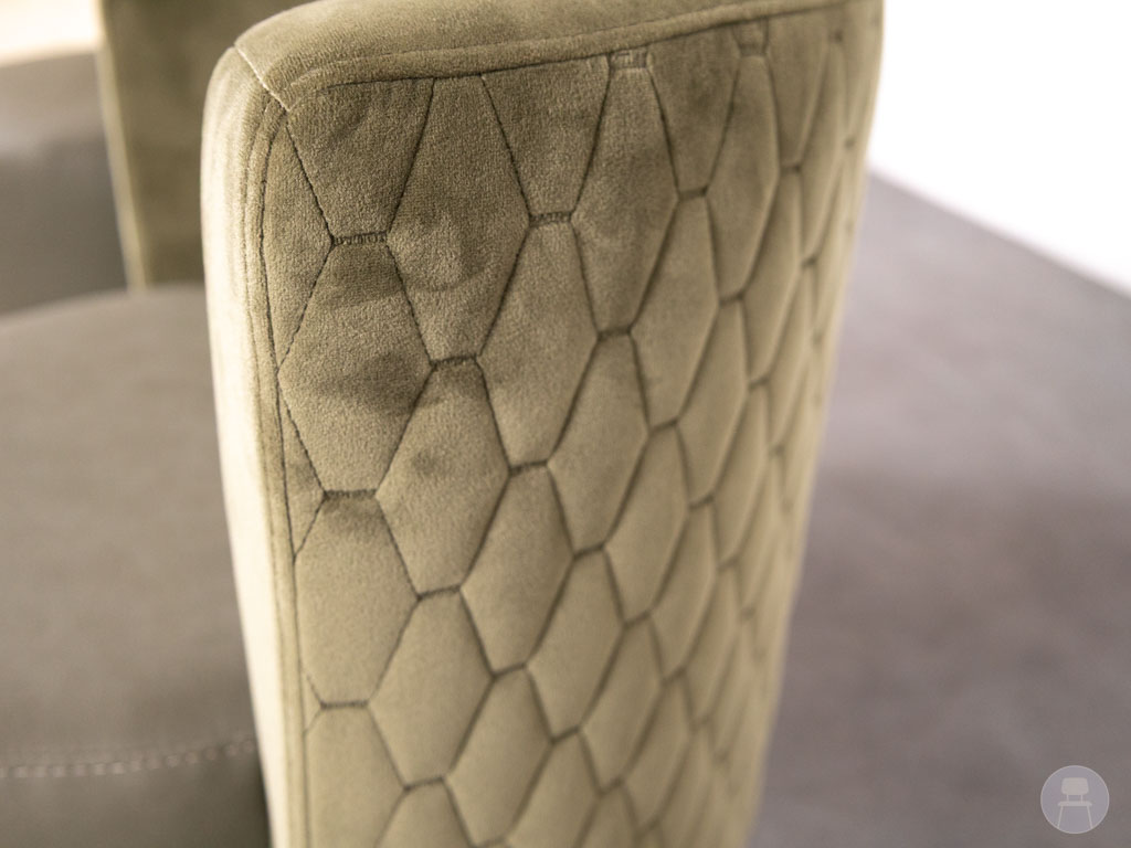 1 set 2 stuks Horecafauteuil Argan AC velvet groen Satelliet is een luxe set horecafauteuils met een moderne en comfortabele uitstraling. Deze fauteuils zijn uitgevoerd met een skai (kunstleren) zitting in groene kleur en een velvet beklede rugleuning, wat zorgt voor een stijlvolle combinatie van praktisch en chic.