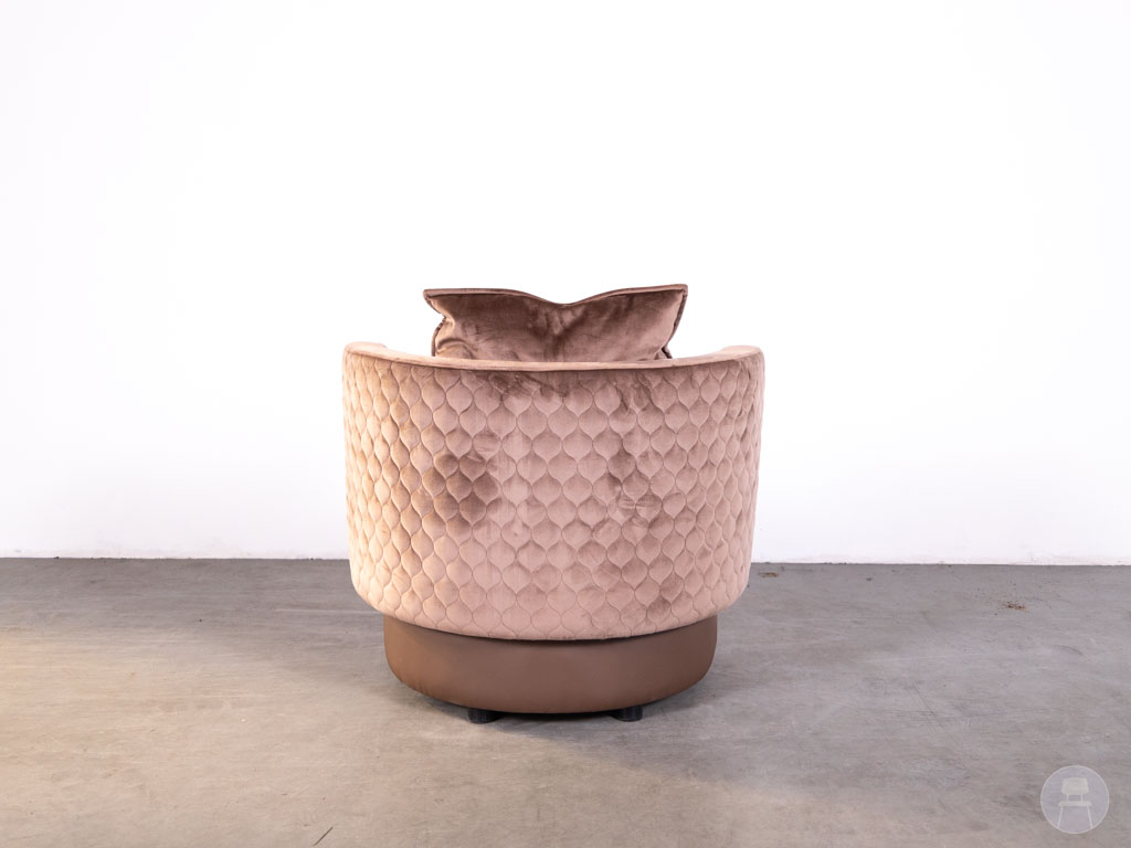 Horecafauteuil Argan LAC roze Satelliet is een luxe horecafauteuil met een opvallend en modern design, uitgevoerd in een combinatie van roze tinten en hoogwaardige materialen. De ronde zitting is bekleed met skai (kunstleer), wat zorgt voor een strakke uitstraling en eenvoudig onderhoud – ideaal voor intensief gebruik in de horeca.