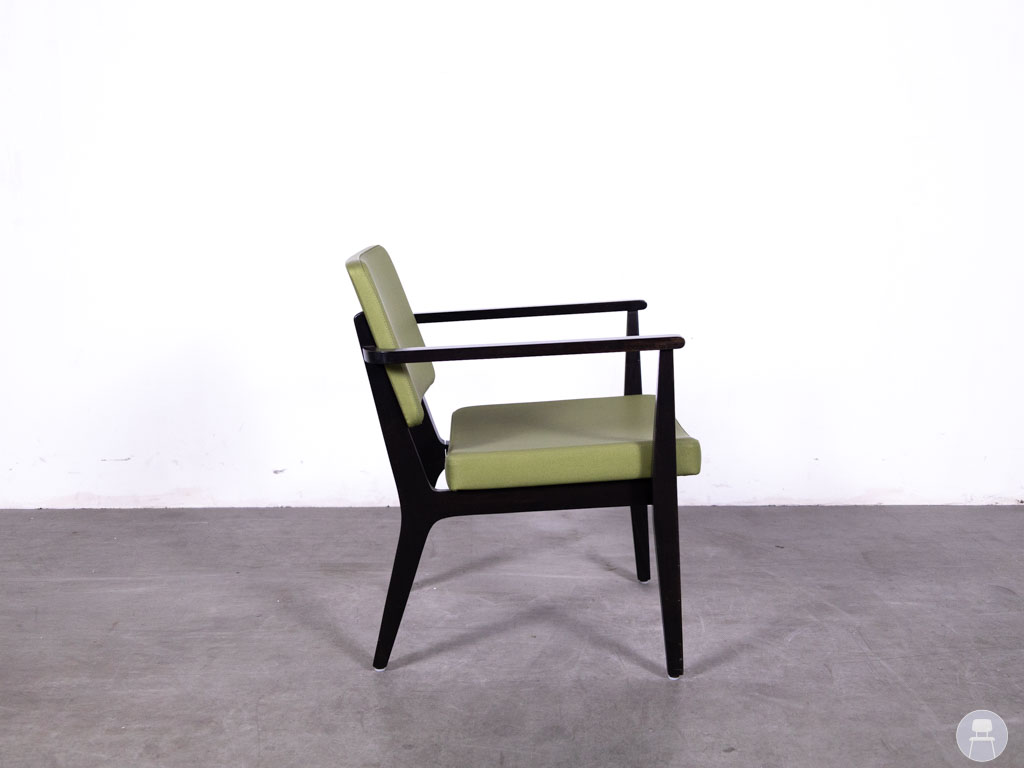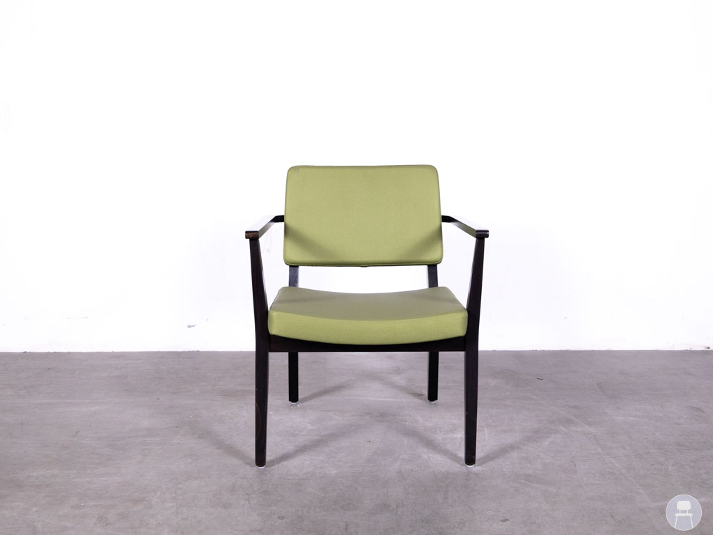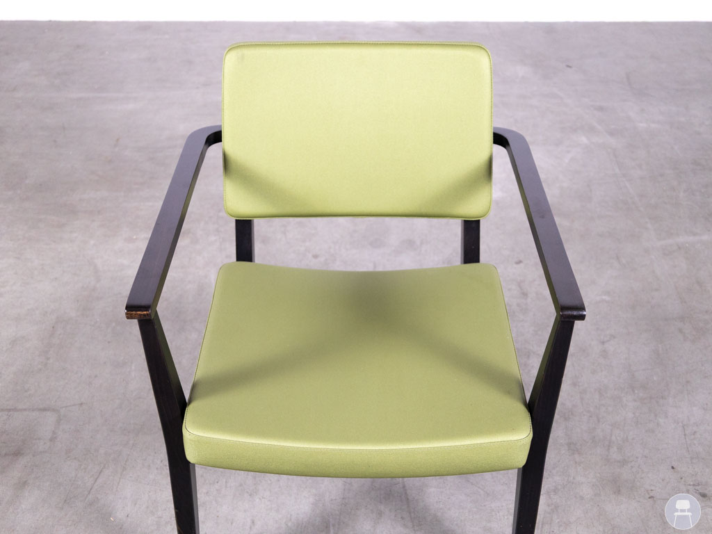 Horecafauteuil Flash LAC groen Satelliet is een stijlvolle en comfortabele horecafauteuil met een tijdloze uitstraling. De combinatie van de frisse groene bekleding en het donkerhouten frame geeft deze stoel een moderne, maar warme look. Dankzij de licht schuine rugleuning en armleuningen biedt de Flash een ontspannen zitcomfort, perfect voor lobby’s, wachtruimtes, cafés of restaurants.