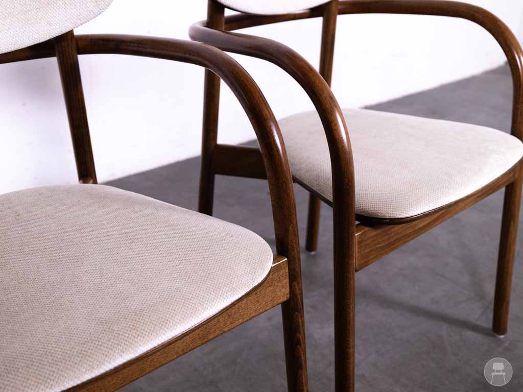 1 set 2 stuks Horecastoel Skala AC Satelliet is een stijlvolle én comfortabele keuze voor elke horecazaak die gaat voor een warme, moderne uitstraling met hoogwaardige kwaliteit. De stoelen hebben een elegant gevormd frame van duurzaam beukenhout en zijn gestoffeerd met een zachte, beige stof die zowel de zitting als de rugleuning een luxe, uitnodigende look geeft. Dankzij het afgeronde ontwerp en de hoogwaardige afwerking sluiten deze horecastoelen perfect aan bij zowel klassieke brasserieën als moderne koffiebars of restaurants.