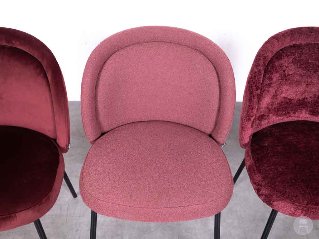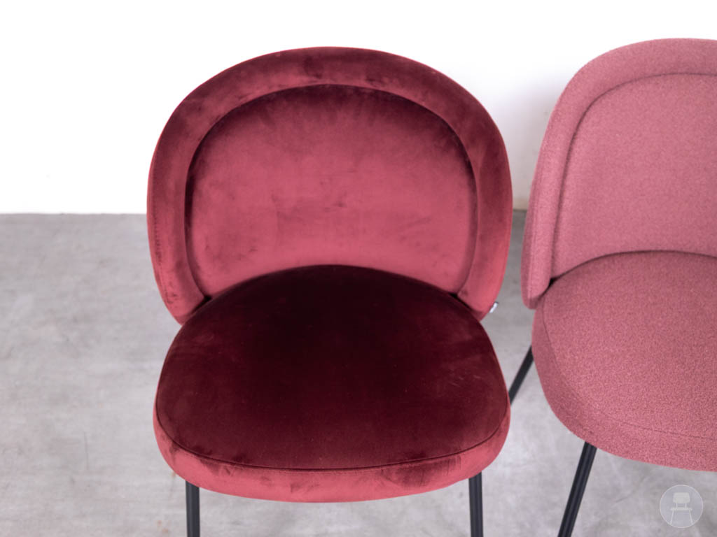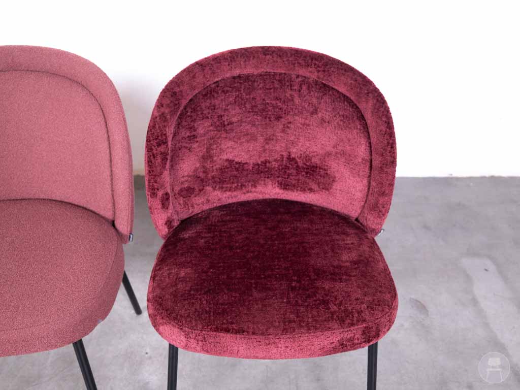 1 set 3 stuks Horecastoel Rodar SC bordeaux mix Satelliet is een ware blikvanger voor iedere stijlvolle horecazaak! Met hun weelderige stoffering in warme bordeauxtinten en een mix van velvet en grovere stof, straalt deze set pure luxe en eigentijdse flair uit. Elk model heeft nét een andere textuur en kleurtoon, wat zorgt voor een speelse en unieke uitstraling zonder afbreuk te doen aan de harmonie.
