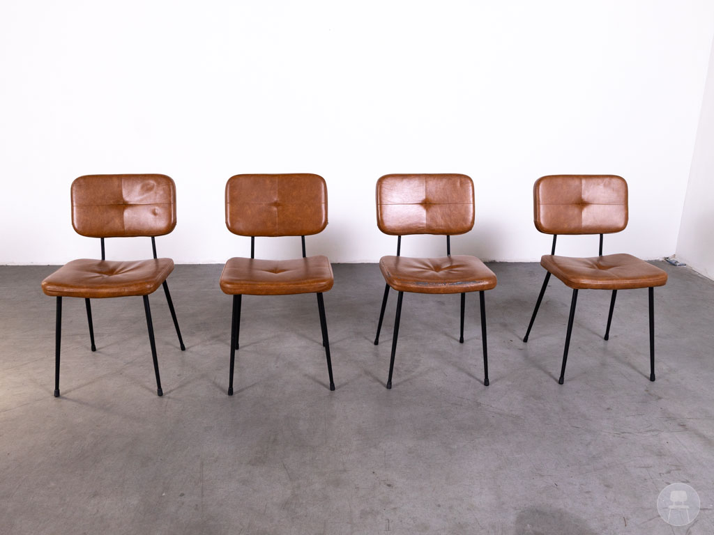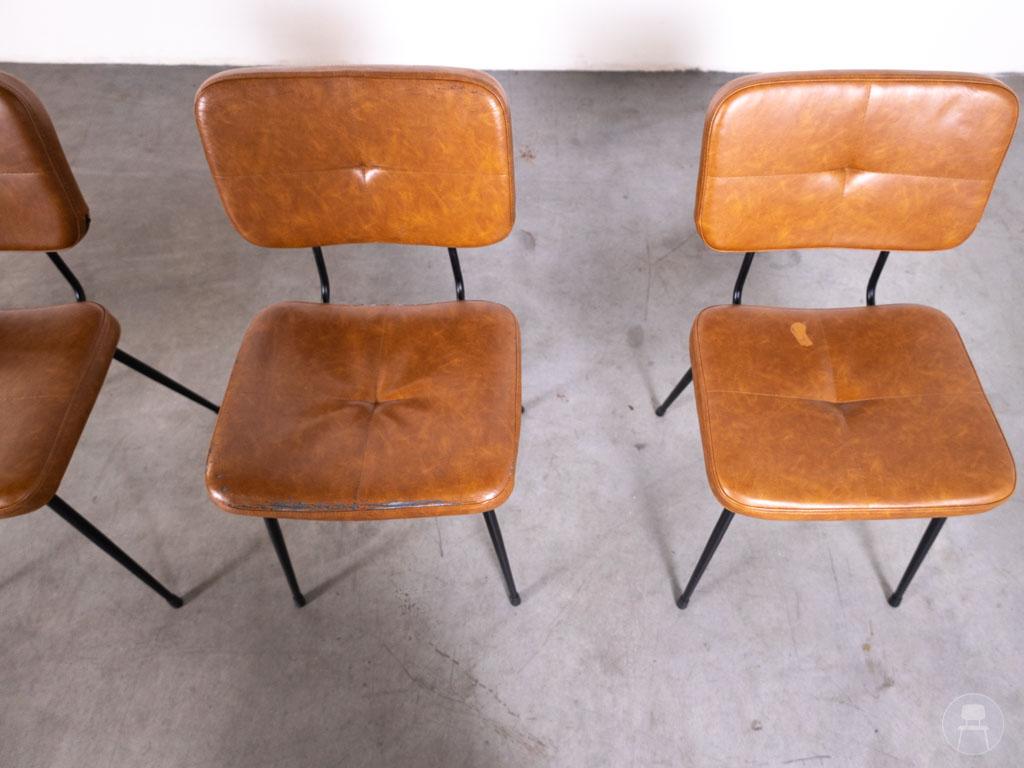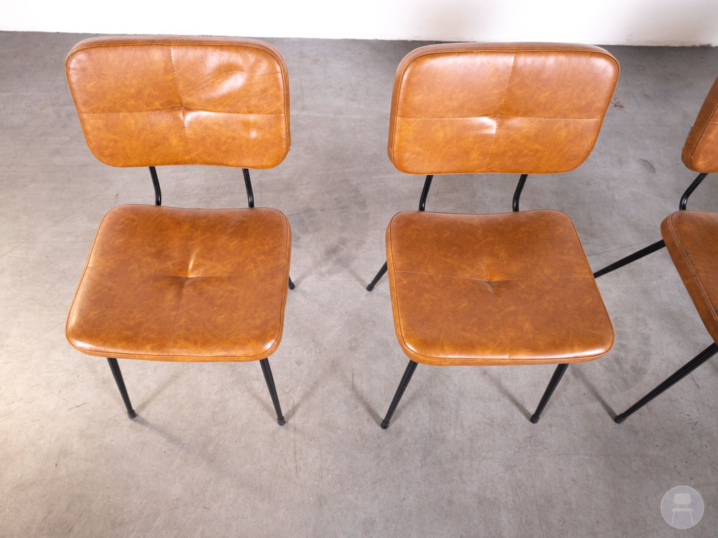 1 set 4 stuks Horecastoel Gerlin SC bruin Satelliet is een set robuuste horecastoelen met een industriële uitstraling, uitgevoerd in bruin kunstleer en een zwart metalen onderstel. De combinatie van het slanke frame en de comfortabele zitting maakt deze stoelen ideaal voor restaurants, cafés en andere horecagelegenheden.