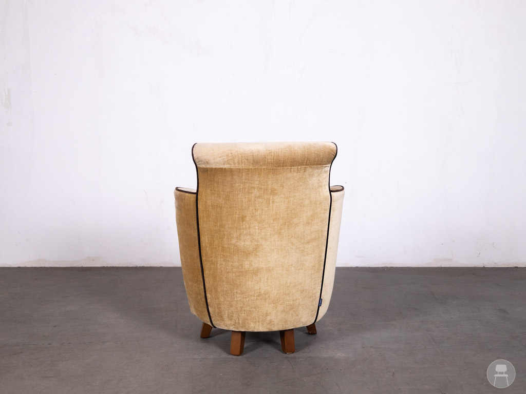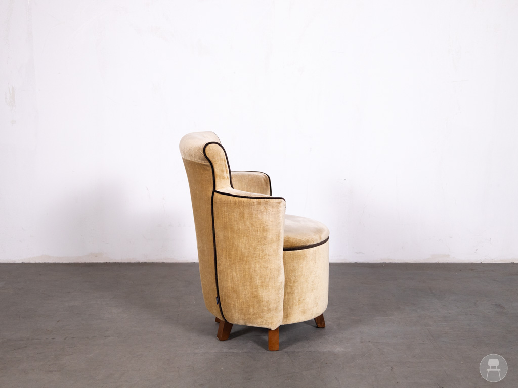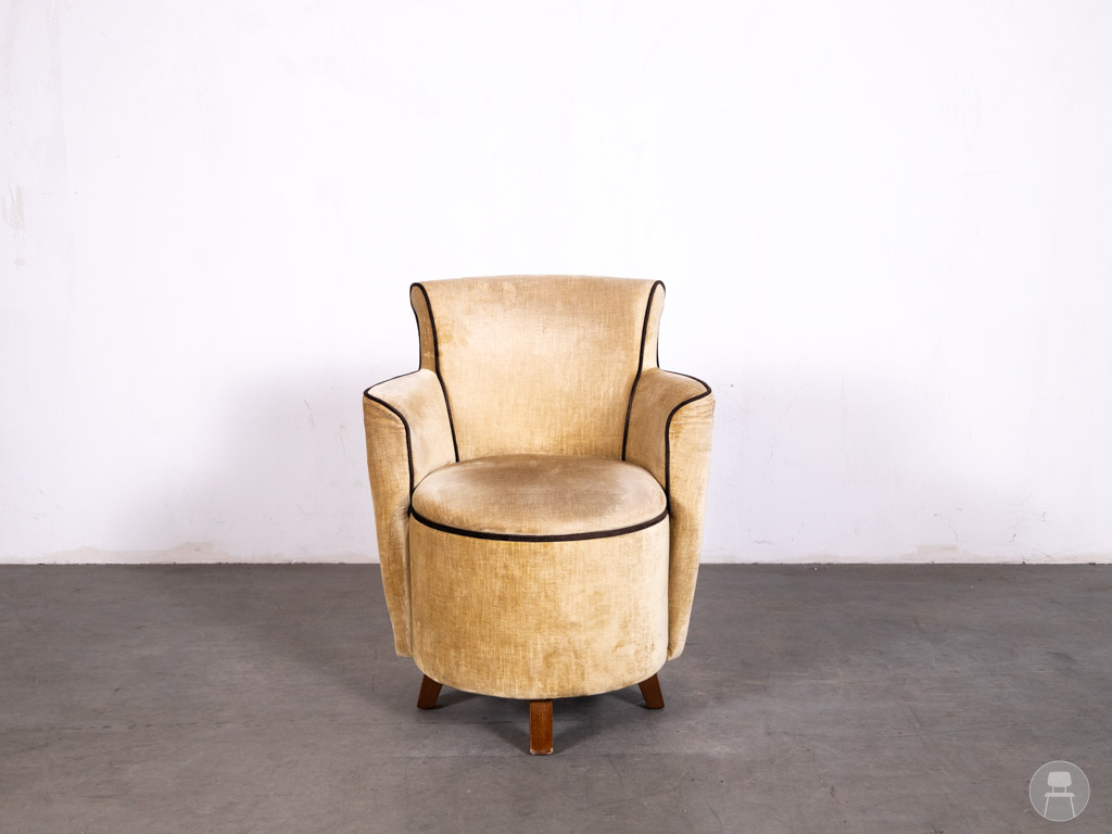 Horecastoel Finny velvet creme Satelliet is een stijlvolle en comfortabele fauteuil met een retro-chique uitstraling. De fluweelzachte crèmekleurige bekleding straalt luxe uit en voelt heerlijk aan, terwijl de donker afgewerkte bies zorgt voor een elegante contrastlijn. Het afgeronde design en de subtiele armleuningen van de horecastoel bieden uitstekend zitcomfort, ideaal voor restaurants, lounges of stijlvolle cafés. De compacte vorm maakt deze stoel van Satelliet perfect voor knusse hoekjes, terwijl de houten pootjes zorgen voor een stevige basis en een klassieke touch. Een unieke blikvanger die sfeer, klasse en comfort combineert! Let op: de stoelen hebben gebruikssporen op de stof.
