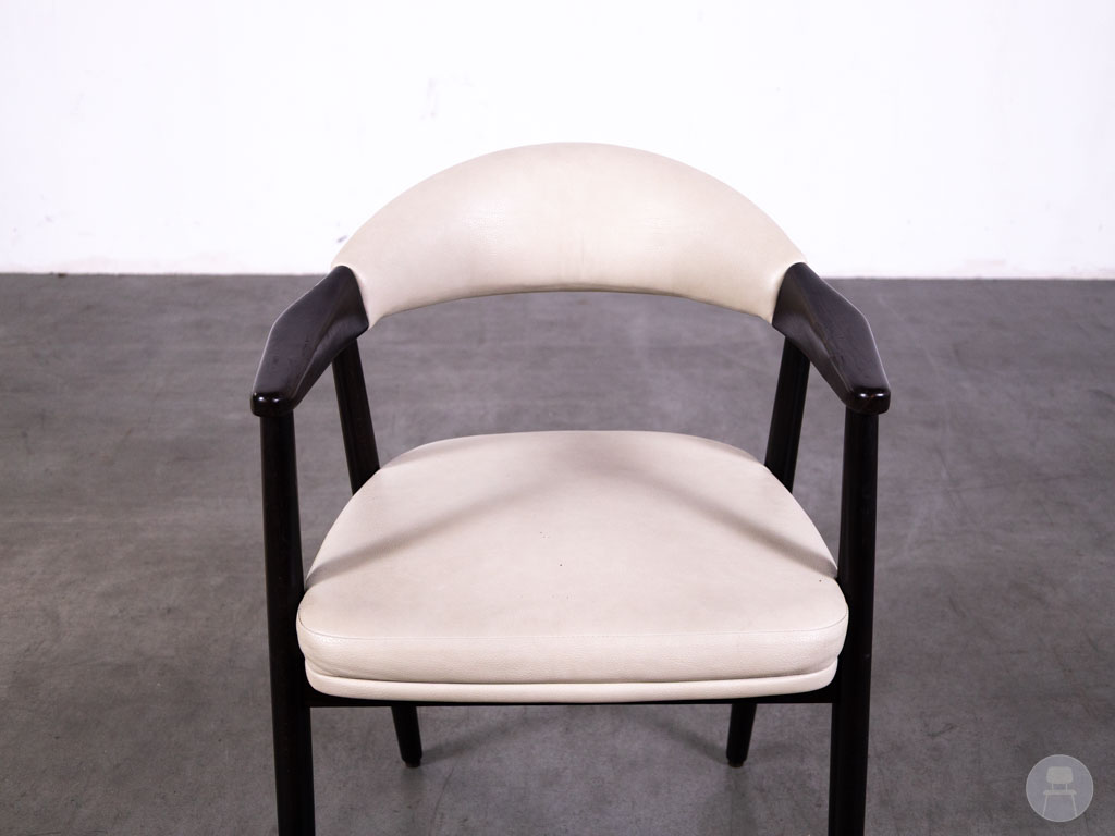 Horecastoel Novalis AC creme Satelliet is een moderne en elegante stoel die stijl en comfort perfect weet te combineren. Het zwarte beukenhouten frame zorgt voor een strakke en robuuste basis, terwijl de zitting en rugleuning zijn bekleed met hoogwaardig crème skai leer. Deze combinatie van lichte bekleding en donker hout geeft de stoel een tijdloze uitstraling die zowel in klassieke als in eigentijdse horecagelegenheden uitstekend tot zijn recht komt.