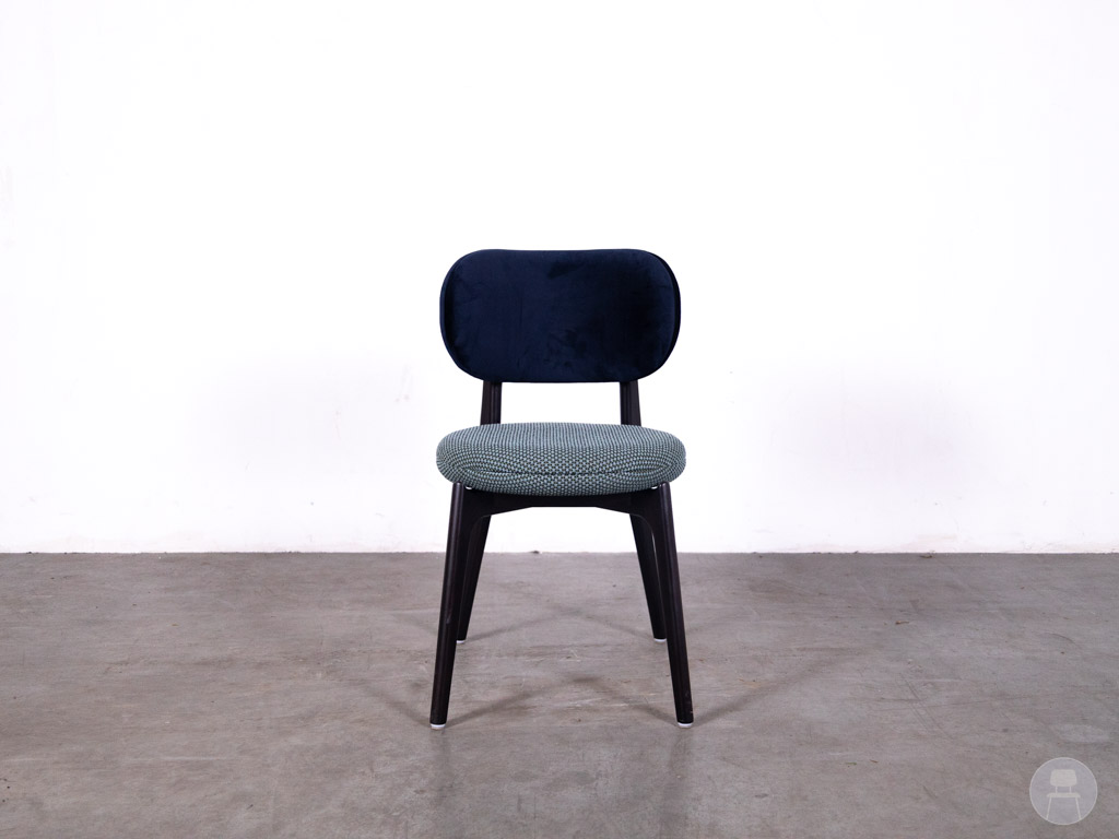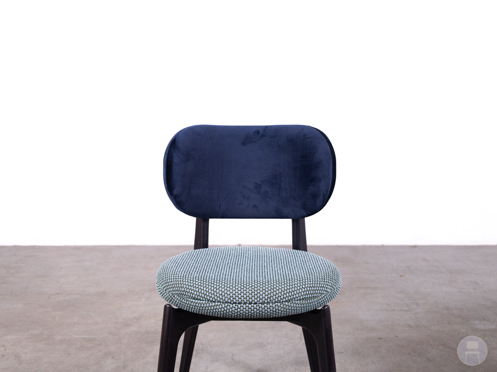 De Horecastoel Pebble SC vintage groen/blauw Satelliet is een eigentijdse en comfortabele horecastoel met een speelse, stijlvolle uitstraling. De combinatie van een ronde zitting in vintage groen/blauw met een zachte, donkerblauwe rugleuning geeft deze stoel een unieke en karaktervolle look die direct sfeer toevoegt aan iedere horecaruimte.