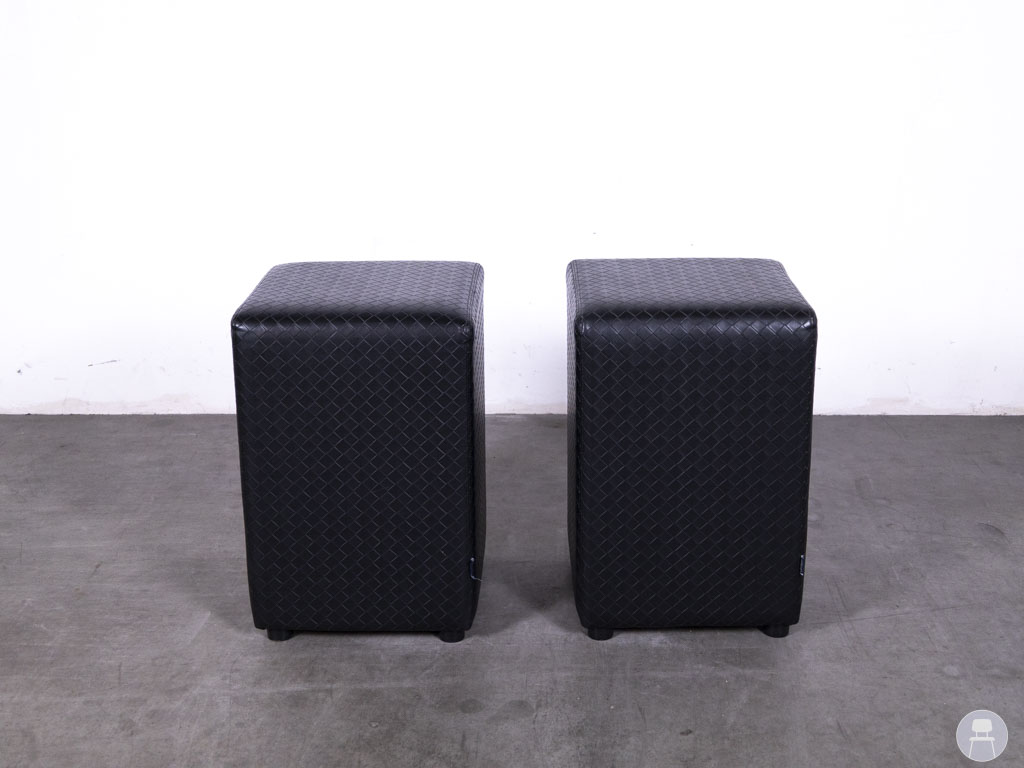 1 set 2 stuks Poef Tempo SQ MS Ruit zwart Satelliet biedt een stijlvolle zitoplossing met een luxe uitstraling. Deze vierkante poefen zijn bekleed met zwart kunstleer voorzien van een elegante ruitstructuur, wat zorgt voor een moderne en hoogwaardige look. Ze komen uit de collectie van het gerenommeerde horecameubilairmerk Satelliet.