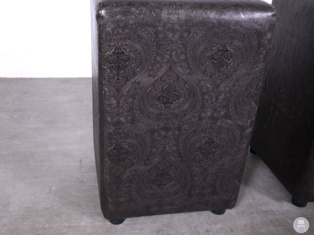 Het vierkante SQ-model is compact en veelzijdig: ideaal als extra zitplek, decoratief element of bijzettafel in bijvoorbeeld een lounge, hotel, bar of wachtruimte. De subtiele glans en het sierlijke motief geven deze gebruikte poefen een warme en luxueuze uitstraling. Deze gebruikte horecapoefen zijn stevig, onderhoudsvriendelijk en makkelijk verplaatsbaar — een praktische én stijlvolle toevoeging aan elk interieur.