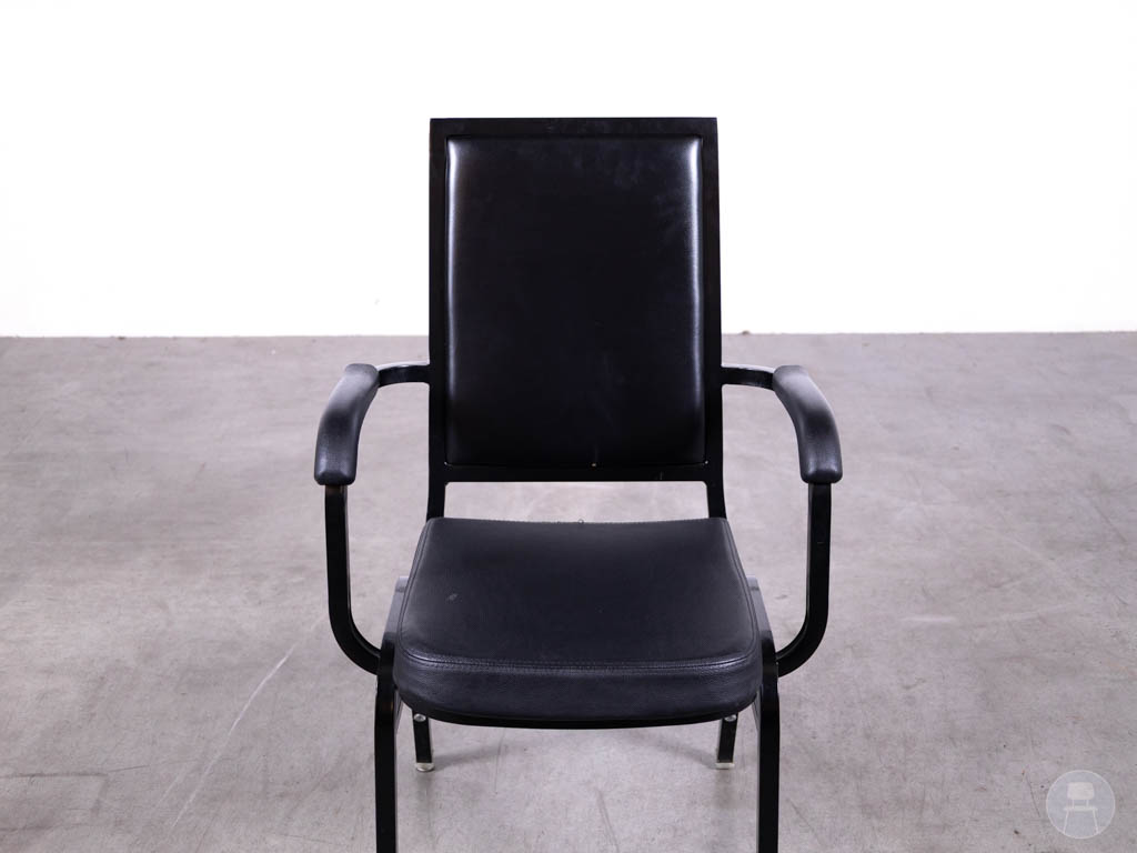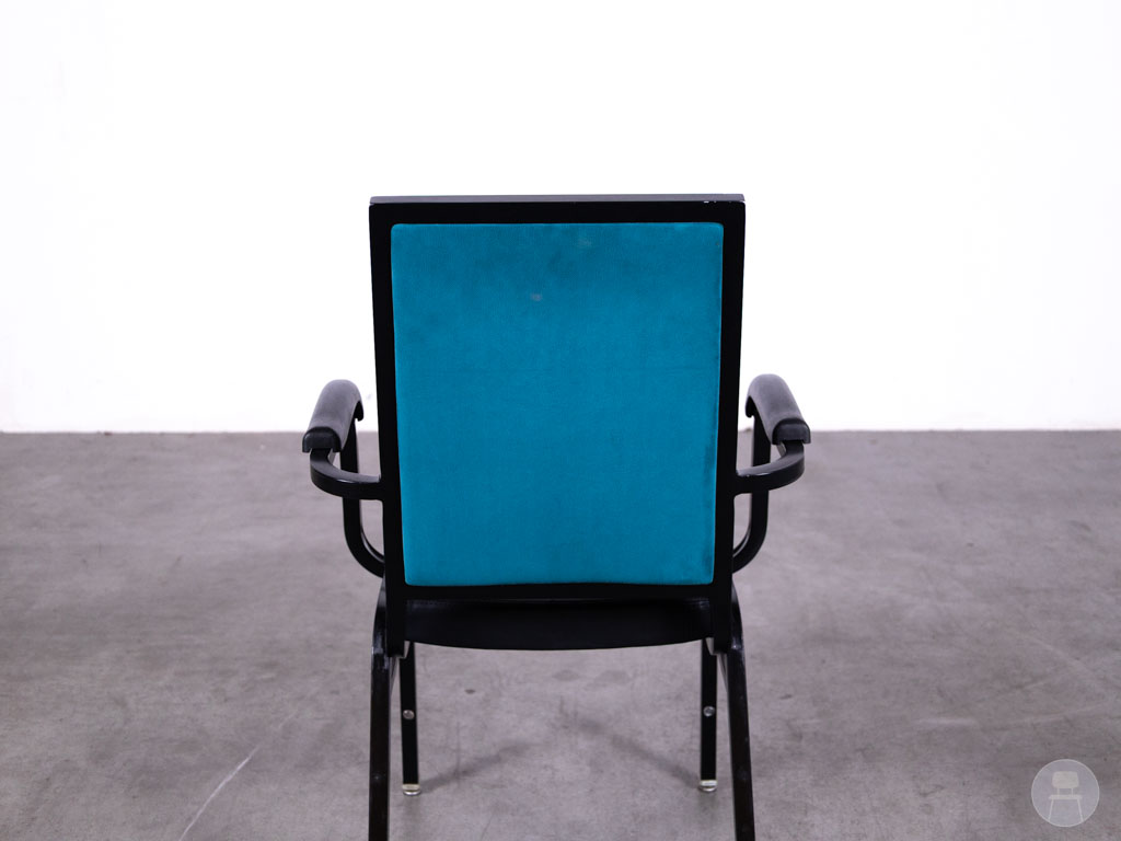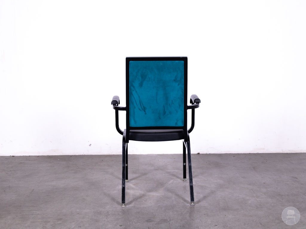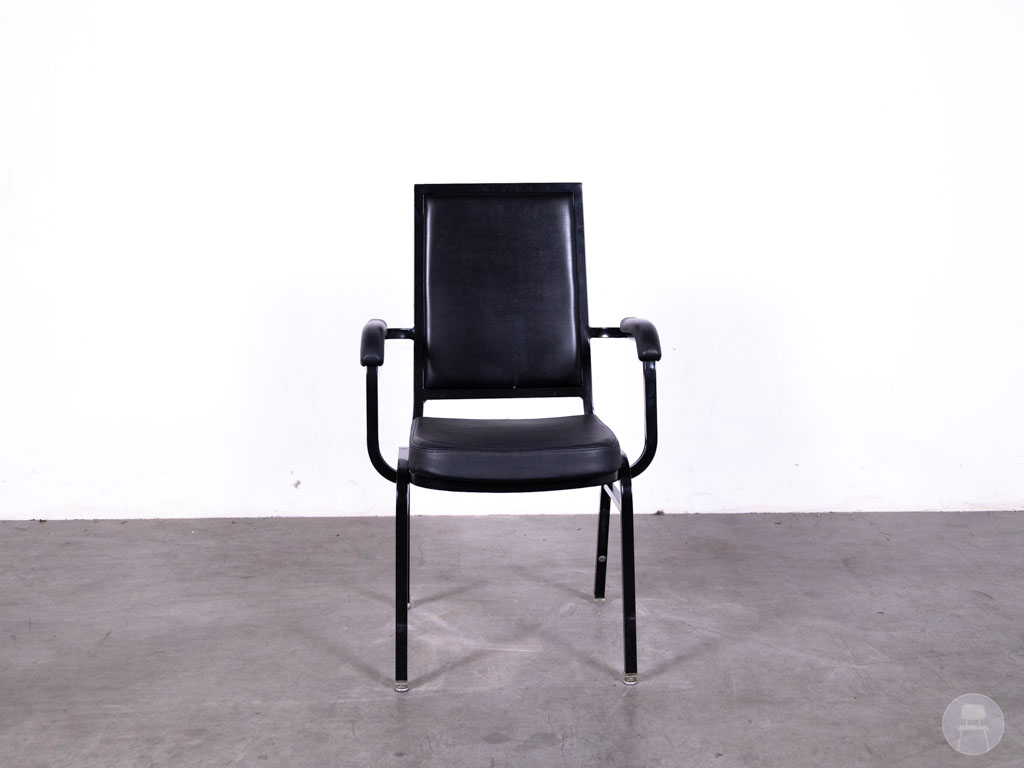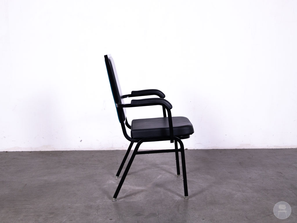 Stackchair Lieve zwart Satelliet combineert comfort, stijl én functionaliteit op een manier die perfect aansluit bij de dynamiek van de horeca. Deze stapelbare horecastoel van het merk Satelliet is voorzien van een stevig zwart stalen frame en een onderhoudsvriendelijke skai lederen zitting, wat hem uitermate geschikt maakt voor intensief gebruik in restaurants, zalen, cafés of vergaderruimtes. De geïntegreerde armleuningen bieden extra zitcomfort, terwijl de verrassend elegante blauwe velvet achterkant een speelse en luxe touch toevoegt die meteen opvalt.
