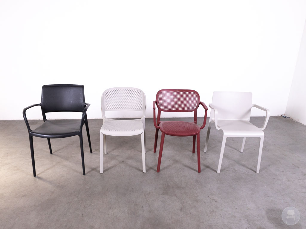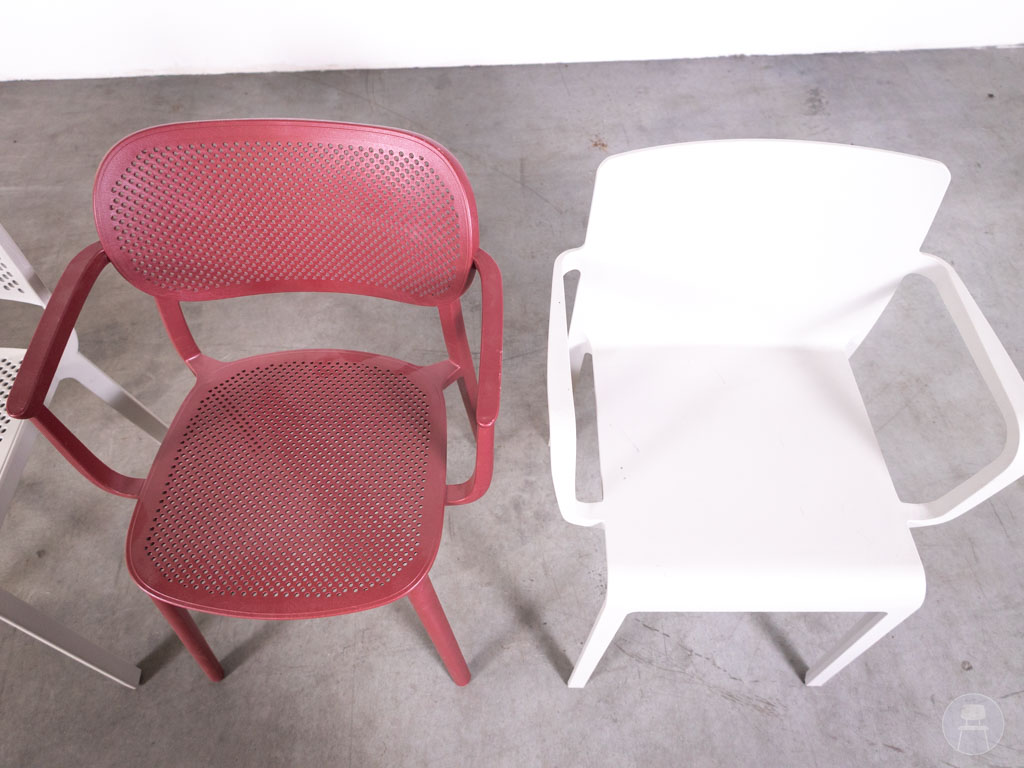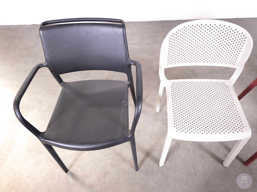 Het kunststof materiaal is weerbestendig, UV-bestendig en eenvoudig te reinigen, waardoor deze terrasstoelen perfect geschikt zijn voor intensief buitengebruik in de horeca. De variatie in designs, met zowel dichte als geperforeerde rugleuningen en armleuningen bij sommige modellen, zorgt voor een dynamische en eigentijdse uitstraling op ieder terras.