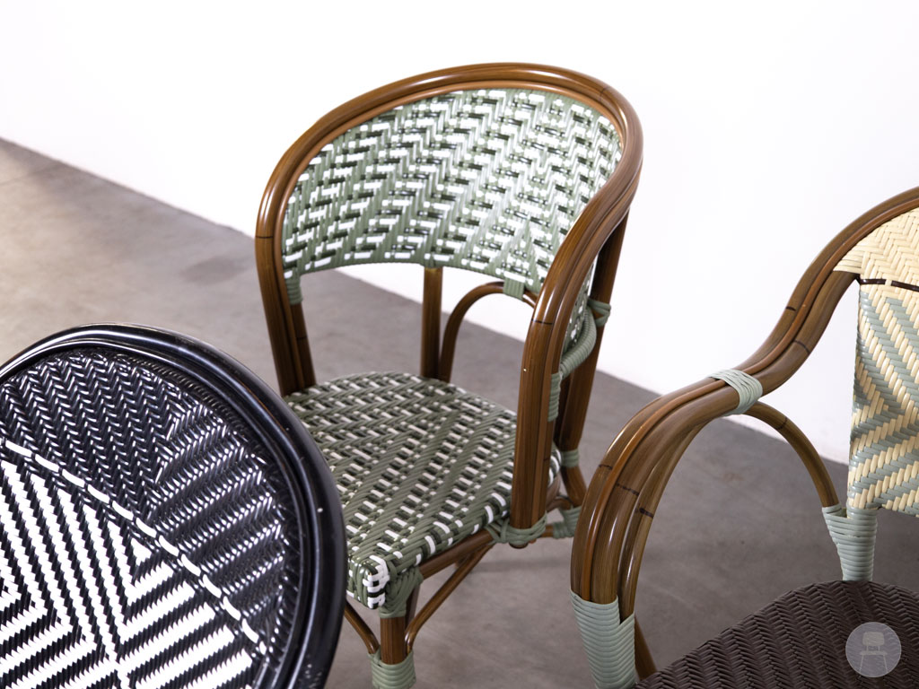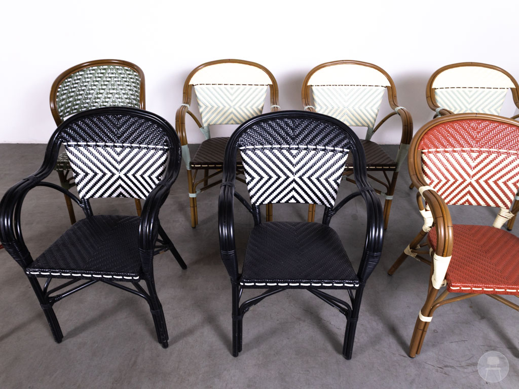 Dankzij deze materialen zijn de stoelen licht van gewicht, onderhoudsvriendelijk en goed bestand tegen weersinvloeden, waardoor ze ideaal zijn voor intensief gebruik op het terras. De armleuningen zorgen voor extra zitcomfort, terwijl het herkenbare design direct sfeer geeft aan iedere horecazaak.