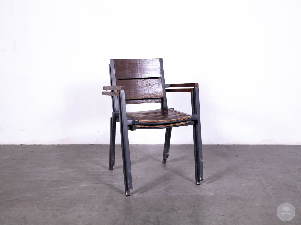 Terrasstoel 25.25 Teak Milou Satelliet is een robuuste en stijlvolle buitenstoel die perfect past op elk horecaterras waar uitstraling én functionaliteit samenkomen. Deze stoel is uitgevoerd met een stevig stalen frame en een teakhouten zitting en rugleuning, waardoor hij bestand is tegen intensief gebruik én de elementen. De warme uitstraling van het teakhout geeft direct sfeer aan je terras, terwijl de strakke vormgeving een moderne touch toevoegt. De armleuningen zorgen voor extra comfort, ideaal voor lange zitmomenten.