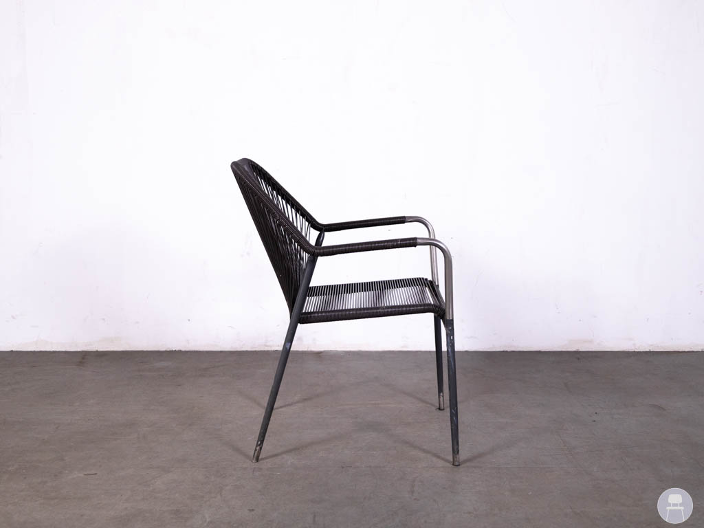 Terrasstoel Toscana AC B-partij zwart Satelliet is een stevige en stijlvolle terrasstoel, uitgevoerd met een metalen frame en een zitting en rugleuning van zwart gevlochten kunststof. Dit zorgt voor een comfortabele zit en een moderne, open uitstraling die goed past op ieder terras.