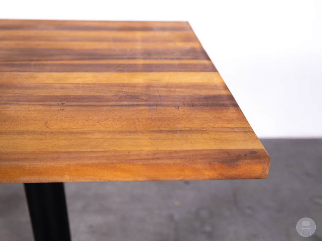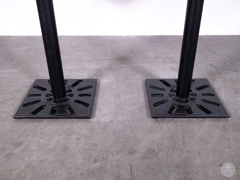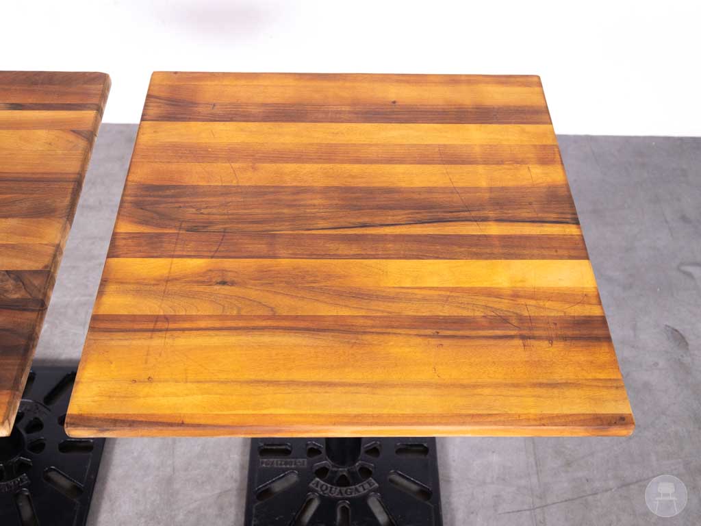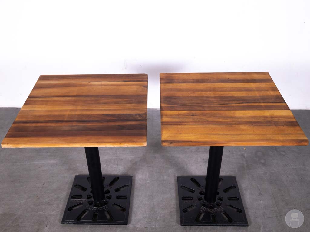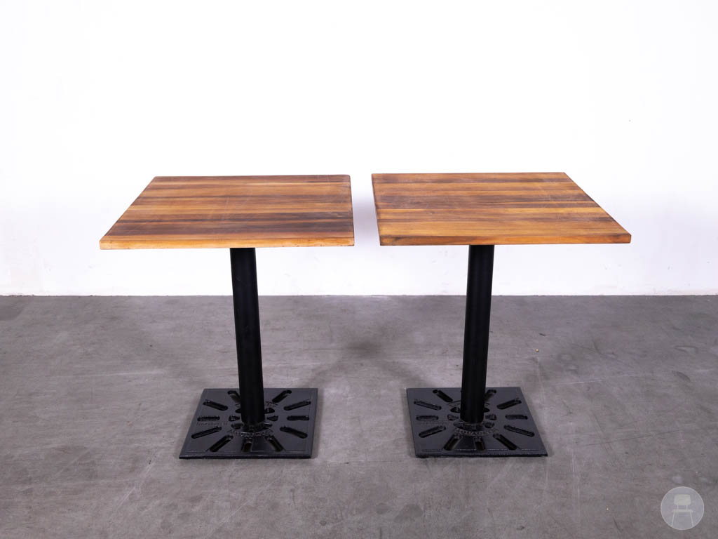 1 set 2 stuks Horecatafel Siem aquagate Satelliet 65x65cm is ideaal voor wie op zoek is naar stoere, compacte tafels die tegen een stootje kunnen. De massief houten 65×65 cm bladen hebben een warme, doorleefde uitstraling en laten de nerf mooi zien. In combinatie met de matzwarte gietijzeren Aquagate onderstellen ontstaat een industriële look die meteen opvalt. De zware voet zorgt voor stabiliteit, zelfs wanneer gasten tegen de tafel leunen of stoelen dicht aanschuiven, waardoor deze set perfect is voor drukke horecaomgevingen.