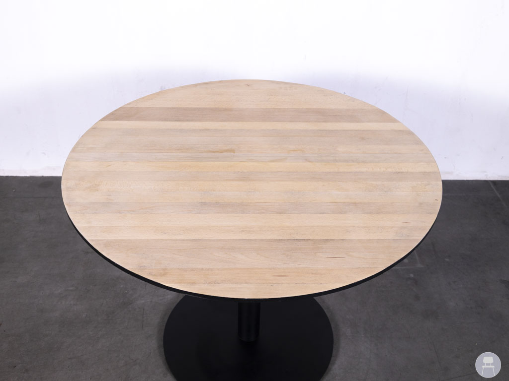 Met een royale diameter van 100cm is deze tafel van het merk Satelliet perfect voor gezellige diners, borrels of koffiemomenten in jouw horecazaak. Het duurzame blad is door Euroseat geschuurd en is geschikt voor intensief gebruik en de combinatie van hout en staal past moeiteloos in elk interieur, van industrieel tot Scandinavisch!