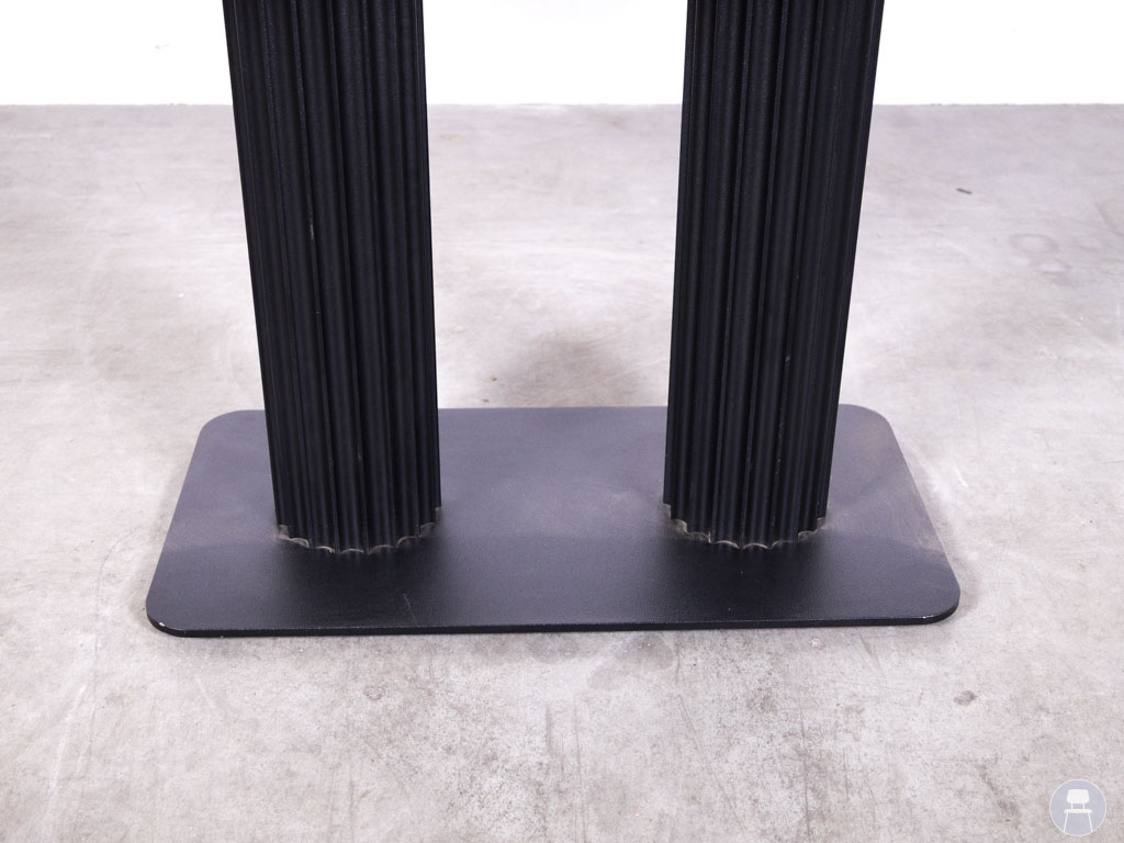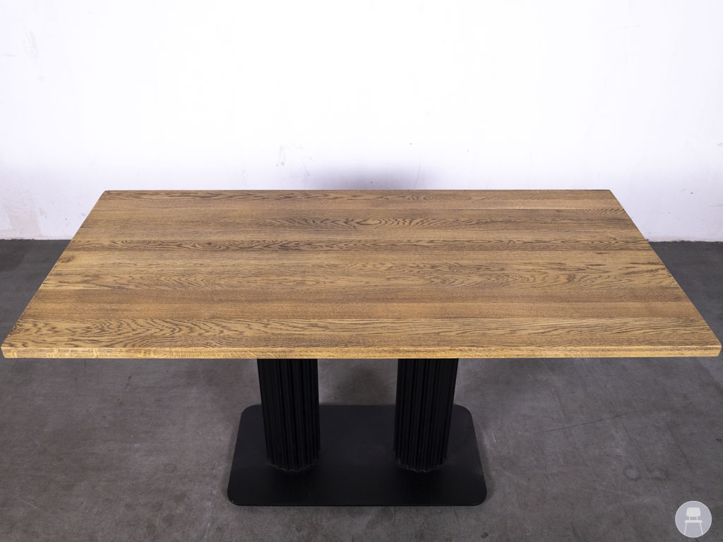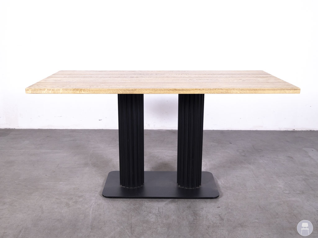 Met een lengte van 150 cm en een breedte van 70 cm biedt deze tafel ruim plaats aan 4 tot 6 personen. Het eiken blad geeft een natuurlijke en tijdloze uitstraling aan je interieur. De dubbele zwarte kolompoot met stevige voetplaat zorgt niet alleen voor uitstekende stabiliteit, maar geeft de horecatafel ook een strakke, industriële touch.