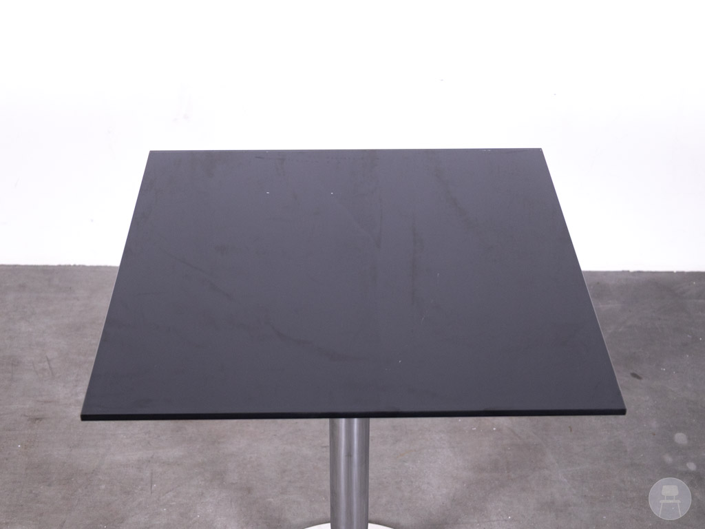 Horecatafel Yves glas zwart Satelliet 60x60cm is een moderne en elegante keuze voor horecazaken die op zoek zijn naar een strak en stijlvol meubel. Het tafelblad is uitgevoerd in zwart veiligheidsglas met een luxe, glanzende afwerking die direct opvalt. Het ronde chromen onderstel zorgt voor een stevige basis én geeft de tafel een moderne, professionele uitstraling.