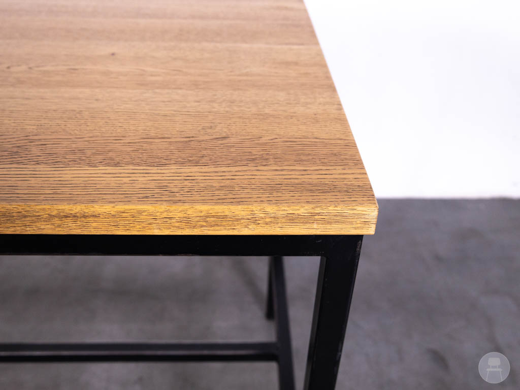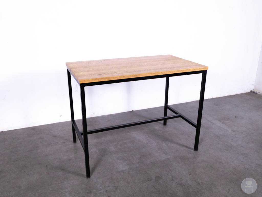 Het blad is vervaardigd uit massief eikenhout en straalt warmte en natuurlijke klasse uit. Gecombineerd met het zwarte stalen onderstel ontstaat een stoer en eigentijds geheel dat zowel in industriële als in klassieke interieurs goed tot zijn recht komt. De afmeting van 120×70 cm biedt voldoende ruimte zonder veel plek in te nemen. Deze tweedehands statafel is een praktische en sfeervolle aanvulling op elk horecaconcept.