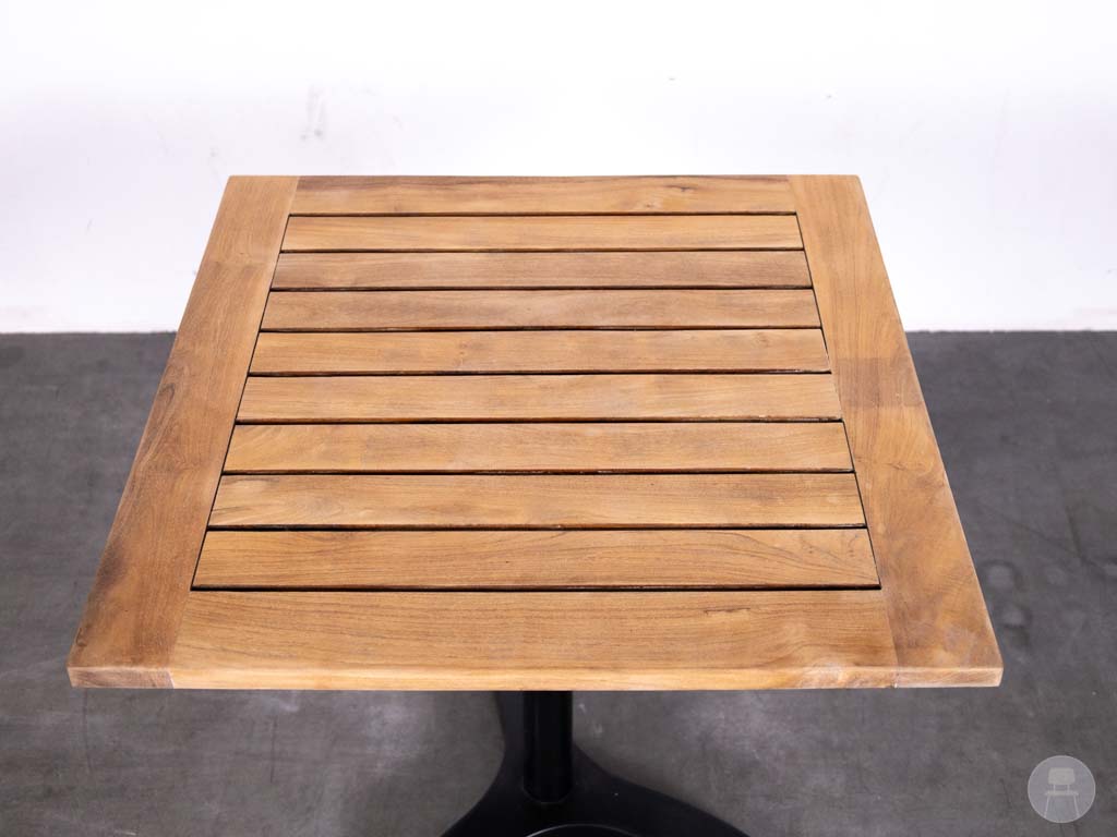 Terrastafel Teak Kim Satelliet 70x70cm is een stijlvolle en duurzame tafel die perfect past bij ieder horecaterras. Het teakhouten blad is door ons zorgvuldig opgeschuurd, waardoor het hout zijn natuurlijke warme kleur en karakteristieke nerf behoudt. Teak staat bekend om zijn weersbestendigheid, waardoor deze tafel uitermate geschikt is voor buitengebruik en bestand is tegen intensief horecagebruik.